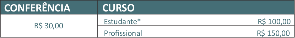 As inscrições podem ser realizadas através da plataforma Sympla. Formas de pagamento aceitas: cartão de crédito, boleto bancário, débito online. Clique aqui para se inscrever.